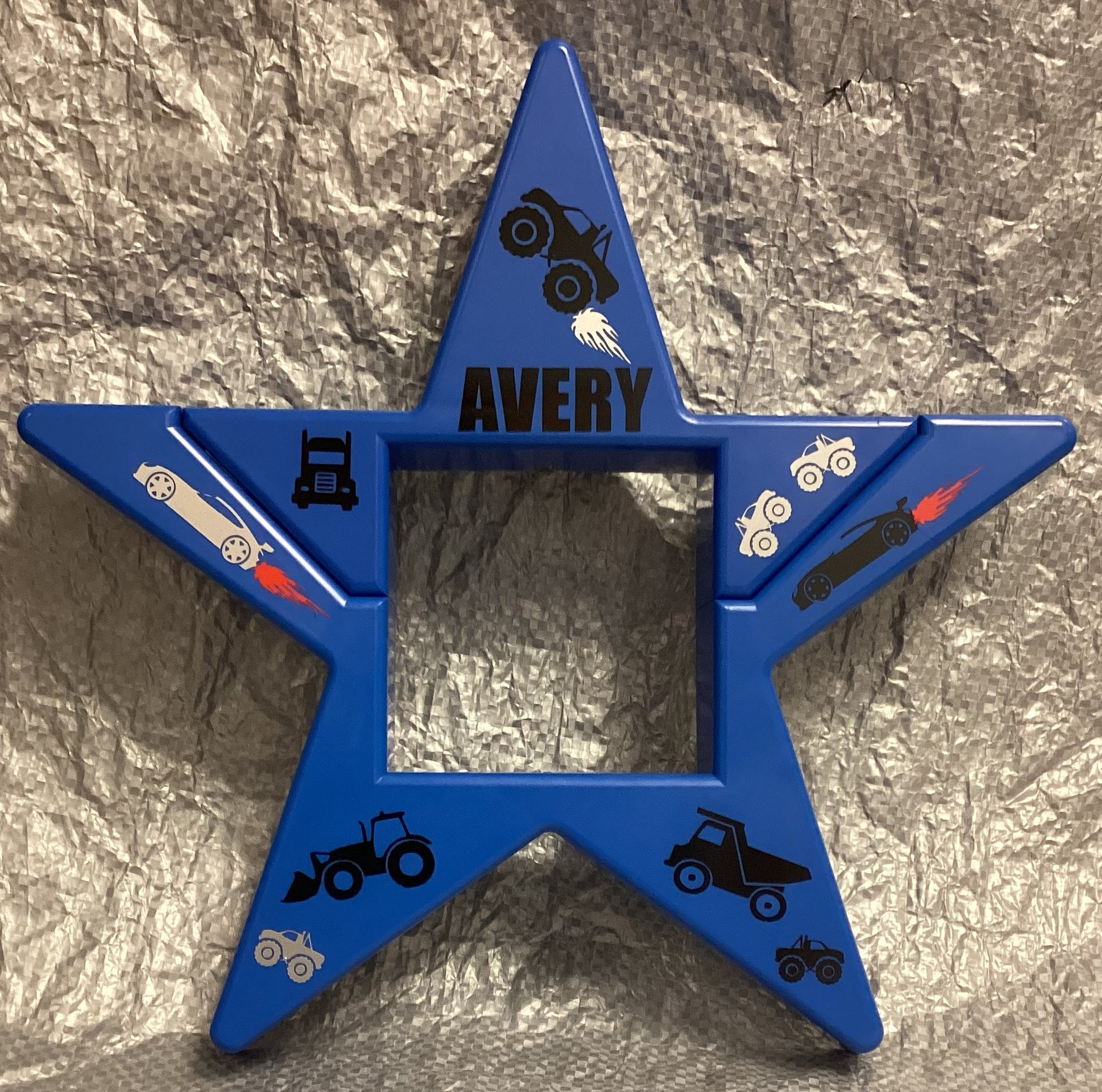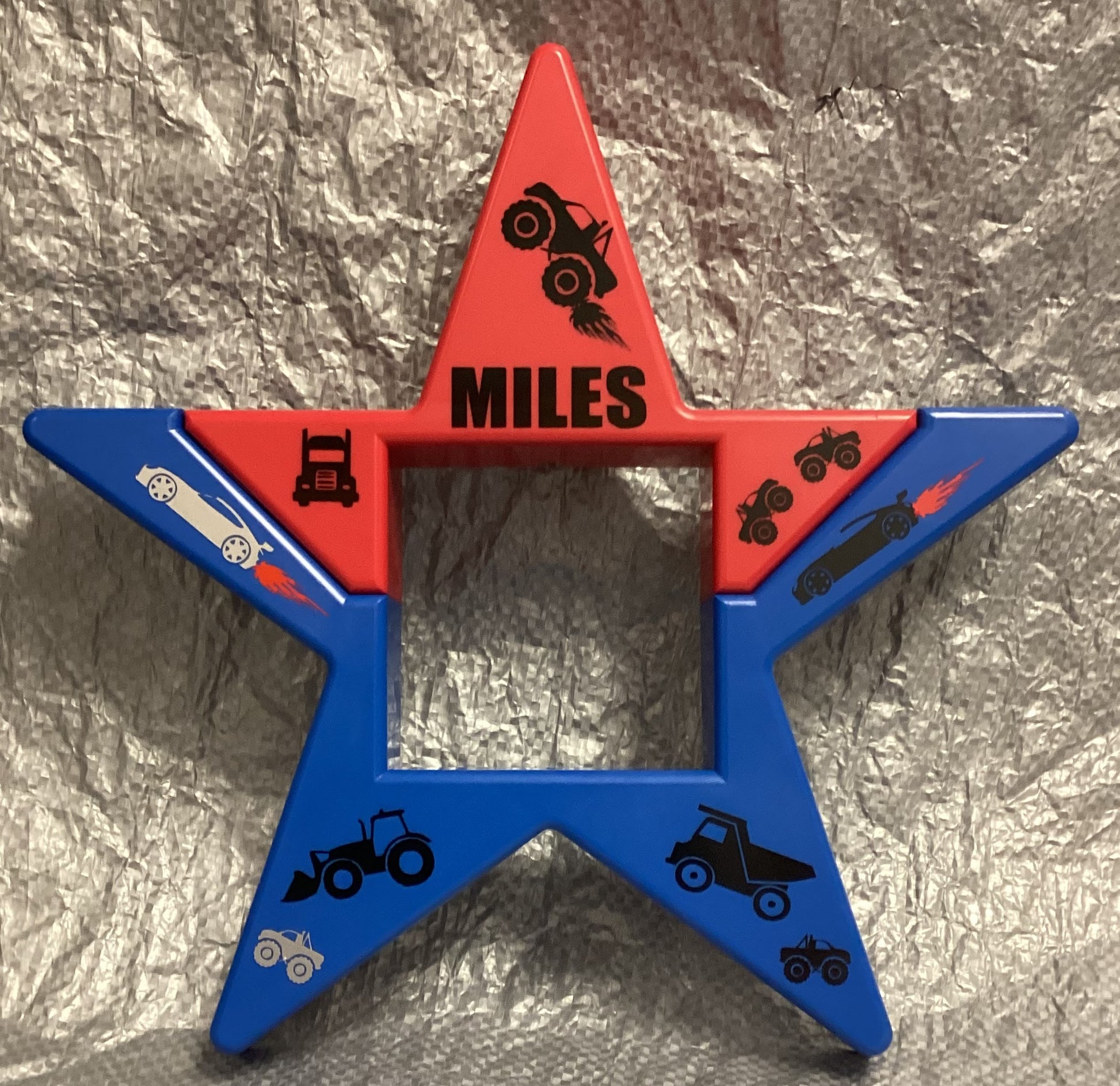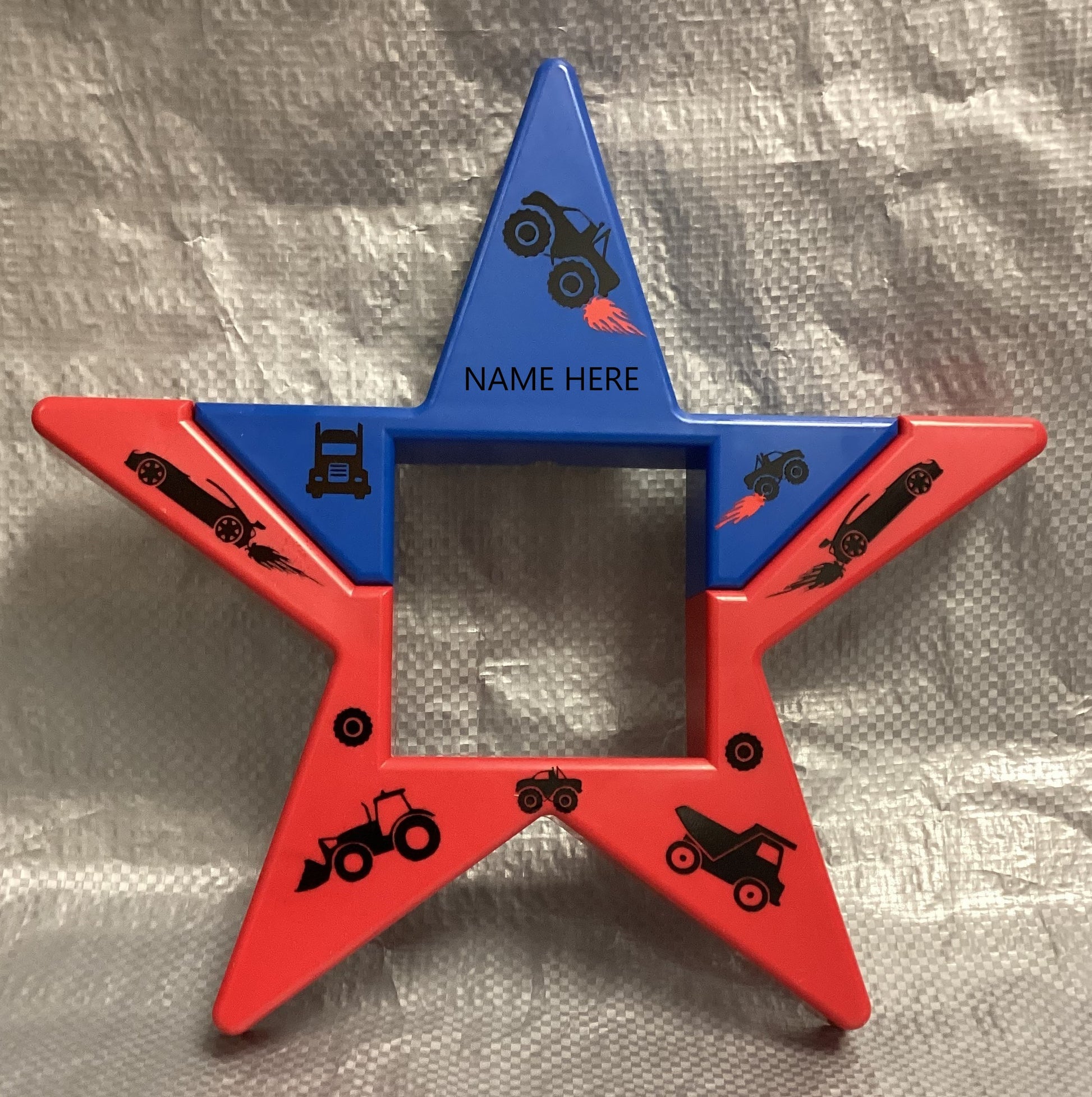 Dinosaurs Star. Add the name in the instruction box. The body is 11.7 " W X12.2" L and made of ABS plastic with a UV stabilizer to protect the product from outdoor elements. The vinyl is Oracal 651 and has a durability rating up to six (6) years. All products ship within 48 hours via First Class mail. Color and design my vary. MADE in the USA