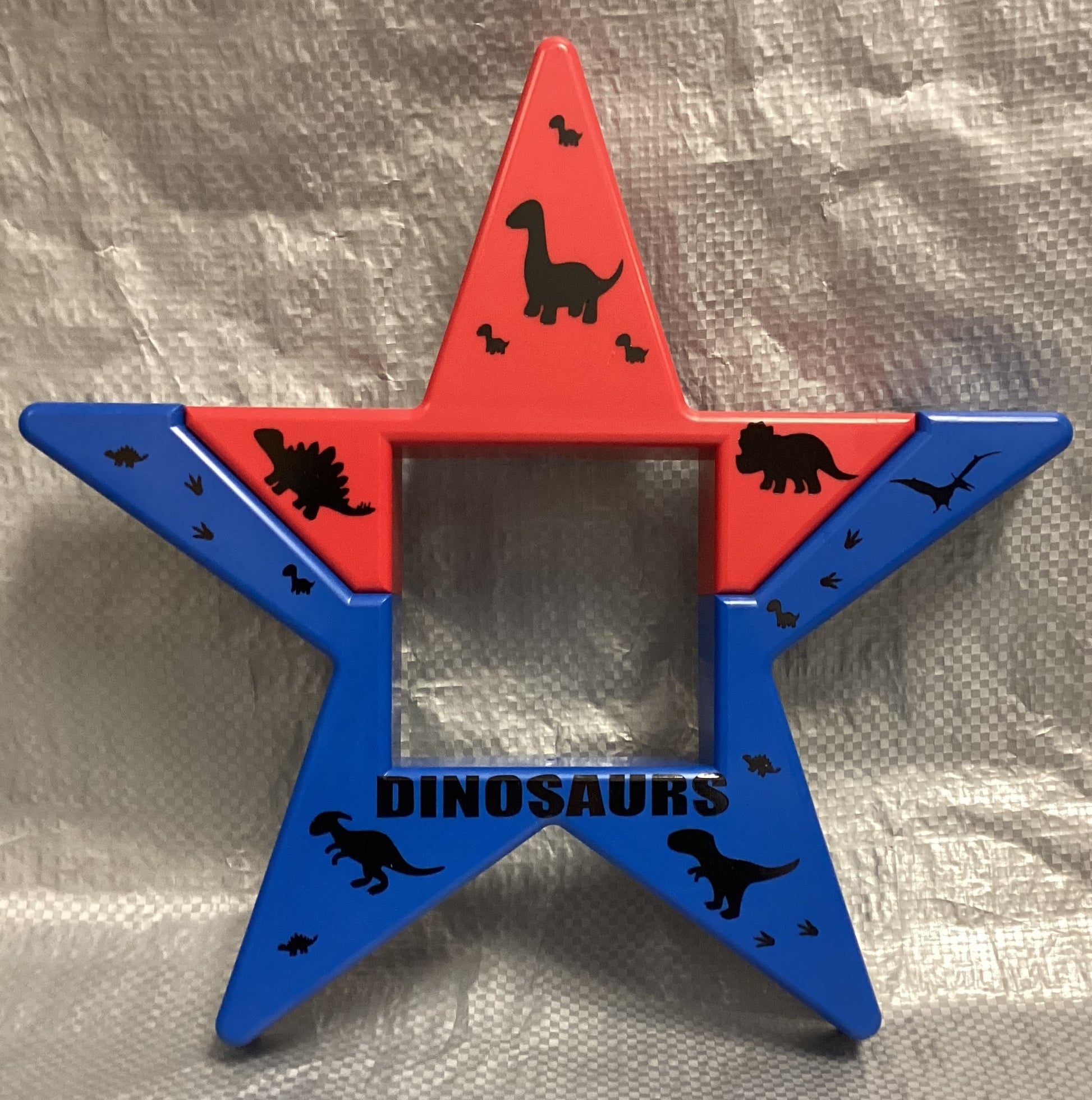 Dinosaurs Star. Please use the INSTRUCTION BOX for the details. The body is 11.7 " W X12.2" L and made of ABS plastic with a UV stabilizer to protect the product from outdoor elements. The vinyl is Oracal 651 and has a durability rating up to six (6) years. All products ship within 48 hours via USPS Ground Advantage or Priority mail. Color and design my vary. MADE in the USA