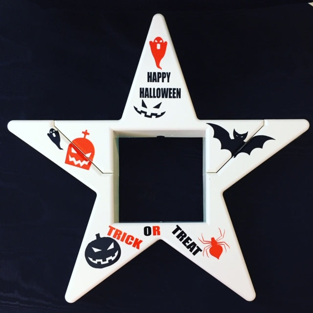 The Halloween Custom Complete Service is the Top & Base decorated with the appropriate color vinyl or as requested. The body is made of ABS plastic with a UV stabilizer to protect the product from outdoor elements. The vinyl is Oracal 651 and has a durability rating up to six (6) years. All products ship within 48 hours via USPS Ground Advantage or USPS 2–3-day Priority mail. Designs may vary. MADE in the USA