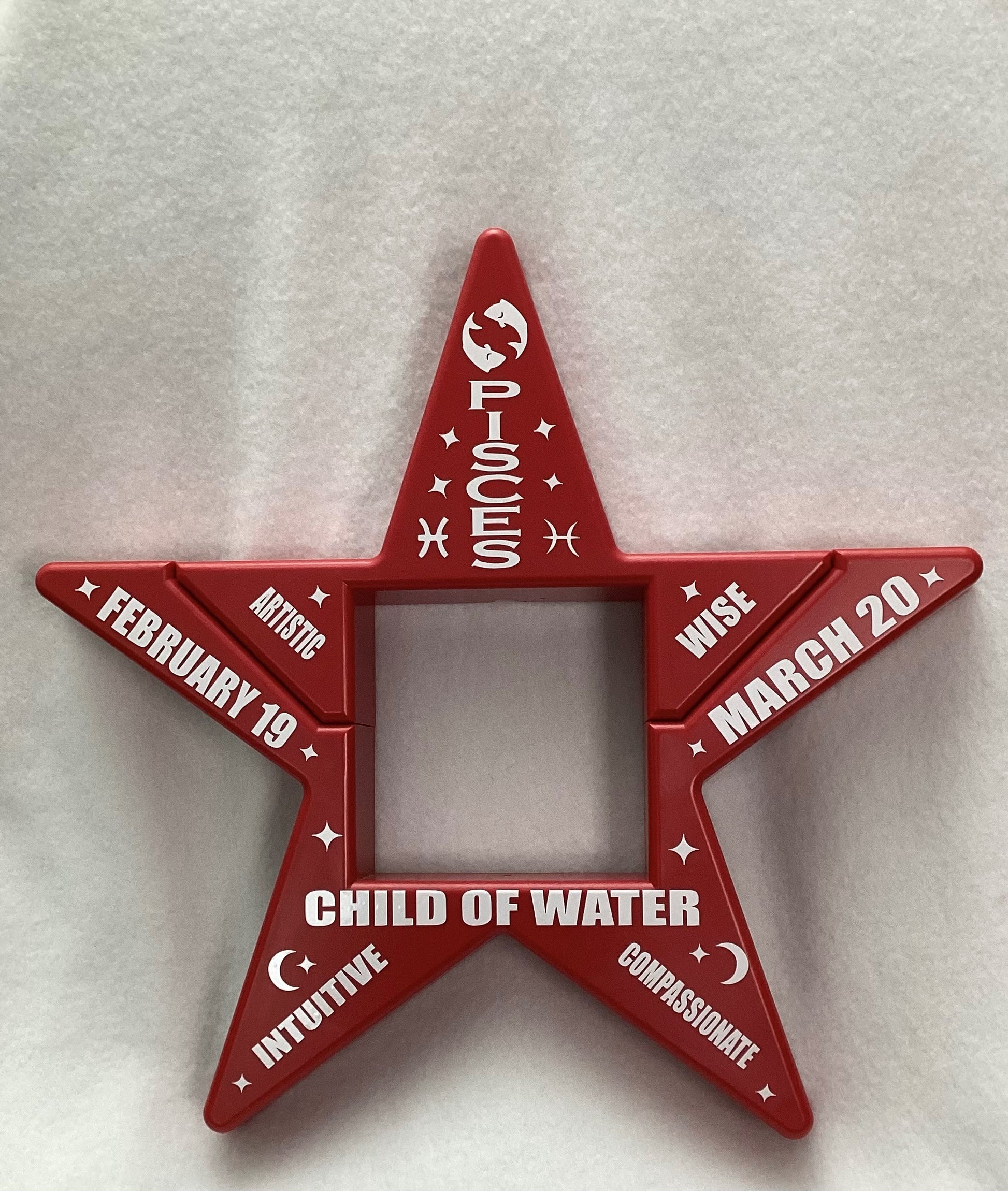 PISCES Horoscope Star. Choose your colors of the Star. Please use the INSTRUCTION BOX for the details. Decorated with Feb. 19-March 20. TRAITS; Compassionate, Artistic, Wise, Intuitive. Child of WATER. The body is made of ABS plastic with a UV stabilizer to protect the product from outdoor elements. The vinyl is Oracal 651 and has a durability rating up to six (6) years. All products ship within 48 hours via First Class or USPS 2–3-day Priority mail. MADE in the USA, Color and Design may vary.